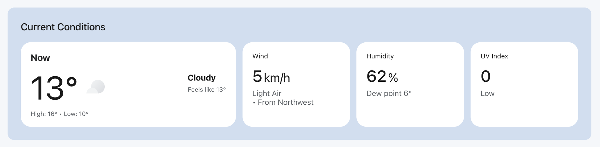 This sends the following query parameters to the Current Conditions endpoint of the Google Weather API: