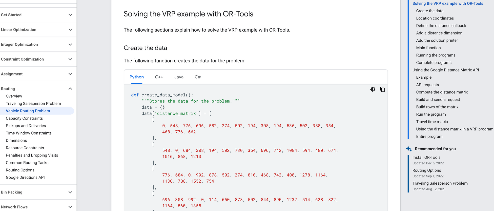 The types of algorithms used to solve this so-called vehicle routing problem vary depending on which engine you use. For example, Google OR-Tools, a popular open source solver, uses local search while Routific, a commercial route optimization API provider uses an algorithm inspired by bees. Regardless of the method, these routing engines all use a cost matrix as a starting point.