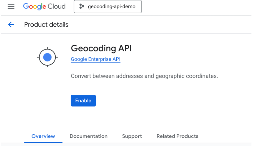 點擊 [地理編碼 API] 連結,然後按下 [啟用] 按鈕。